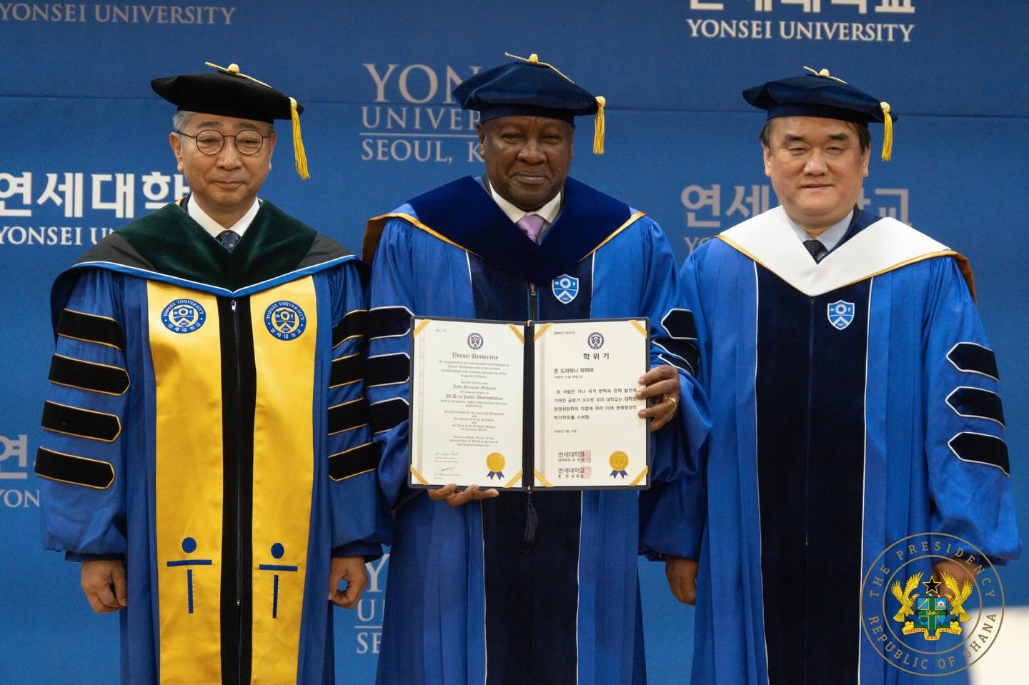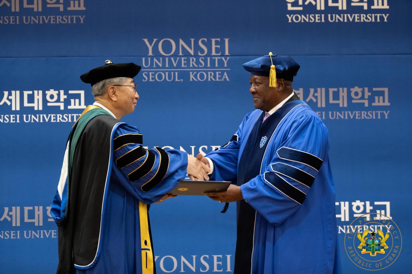 President John Dramani Mahama has described the conferment of an Honorary Doctorate Degree in Public Administration by Yonsei University as a bridge connecting Ghana and South Korea in their shared commitment to building a better global future.